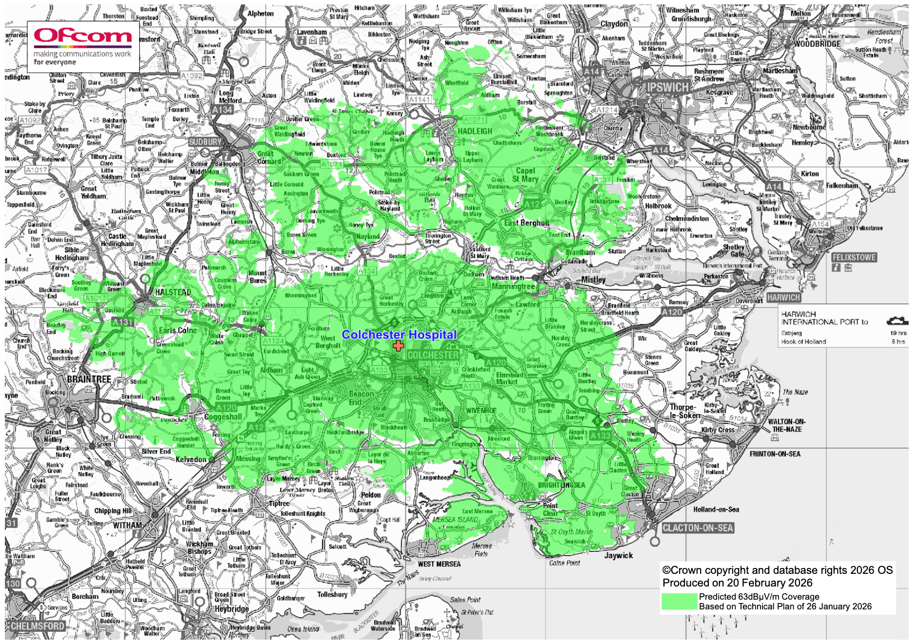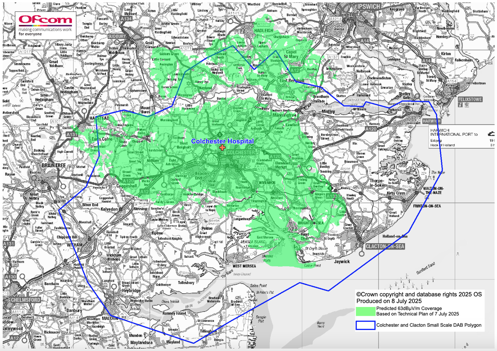 Here is the Essex DAB Indoor Coverage Plot/Map for Colchester & North East Essex